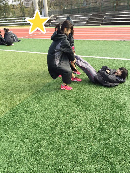 “@SayakaNeon: 撮影にて、3期生と4期生に引きずり回される1期生の図(笑)