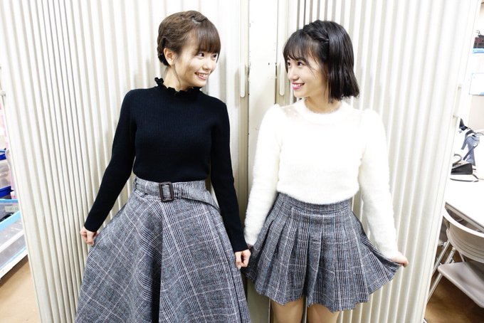 渕上舞(HKT48)@maichan_F_0921 -- 合わせたわけでもなく、たまたま双子コーデみたいになりました👭笑 twitter.com/30_mio_0517/st… 朝長美桜 まいちゃんと、私服が似てたよ〜☺️グレンチェックのスカートに、ニット💗ブラックホワイト🖤♡ pic.twitter.com/kiHqtnm5XX