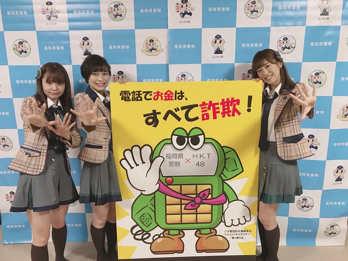 理子ちゃん阿紀ちゃん私の3人で“ニセ電話気づかせ大使”として県民の皆様に呼びかけをさせていただきました。