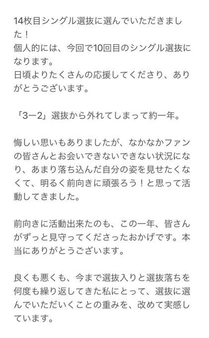 14枚目のシングル選抜に選んでいただきました!