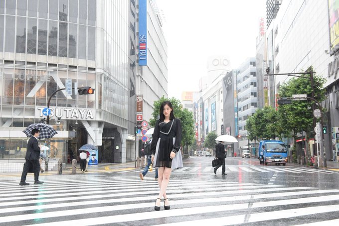 渋谷のスクランブル交差点で朝早くから撮影しました。大雨の交差点撮影は辛いですよね。その後スタジオ、屋上へ移動して撮影しました。