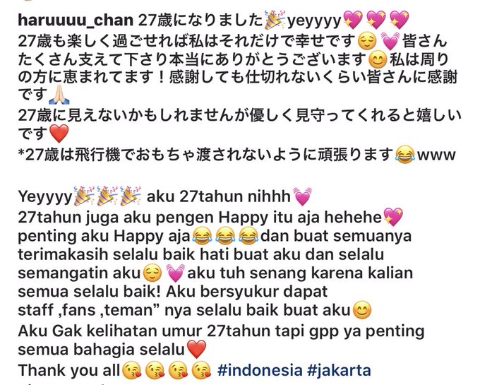 無事インドネシア時間でも27歳になりました!!皆さん27歳もよろしくお願いします😌💞いつもありがとうございます❤️