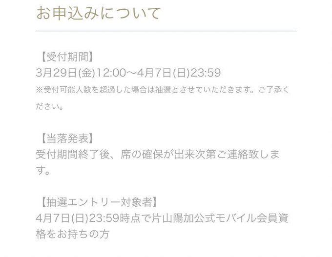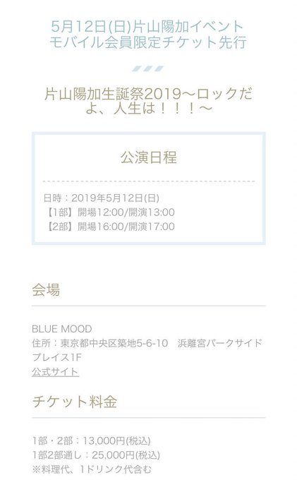 片山陽加@haachandayoo -- まもなく先行発売締め切り!今ならまだ間に合う!!れ twitter.com/haachandayoo/s… 片山陽加 5月12日に行われる生誕祭LIVEの先行チケットが発売開始されました!!!今回はがっつり歌います😍ロック多めな感じです!!みんなからのご応募お待ちしてます♪sp.kataharu.mobi/ticket/ticket_… pic.twitter.com/1ulX1ZPklJ