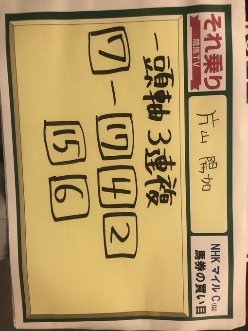 片山陽加@haachandayoo -- 昨日はそれ乗り競馬tvご覧いただきありがとうございました😊今日のNHKマイルの予想!!昨日の雹でまだやや重芝なので今年も何か波乱が起きそうな。 pic.twitter.com/cM2FIrbvhe