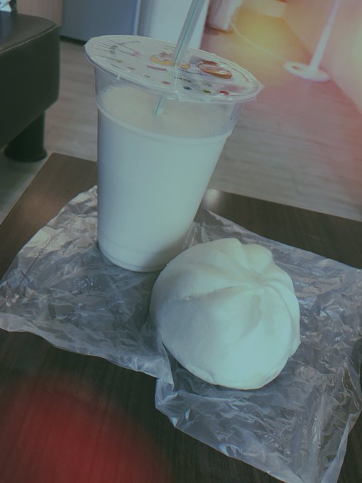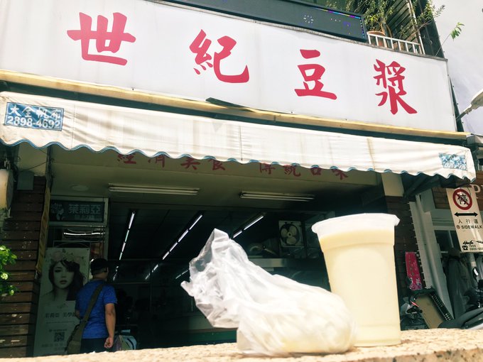 片山陽加@haachandayoo -- 台湾の人気ある朝食屋さん♡程よく甘い豆乳と肉まん!次は豆乳スープと揚げパンも食べたいな♪#台湾#台北#世紀豆漿 pic.twitter.com/os4fS9Dt55