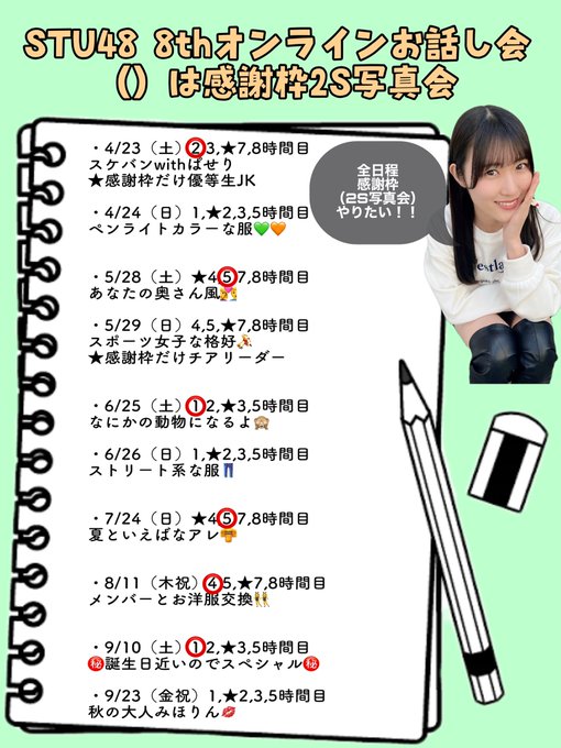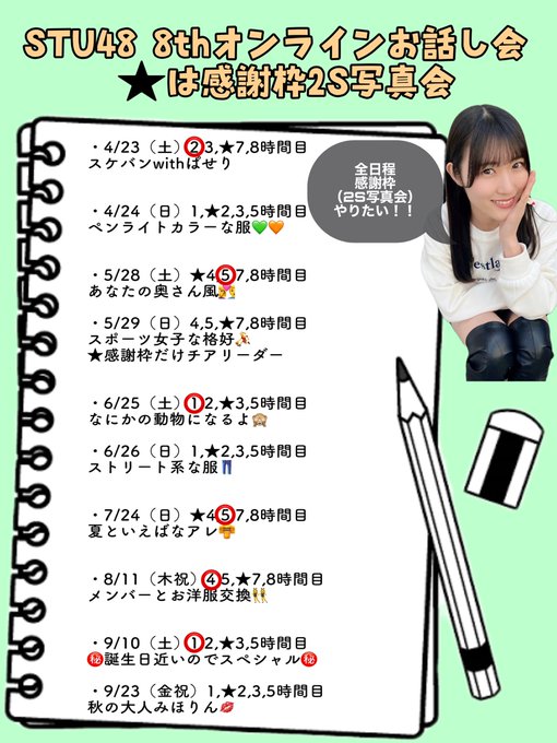 #STU48 8th #オンラインお話し会 受付始まったよ~!おすすめ日は⭕のところです!!