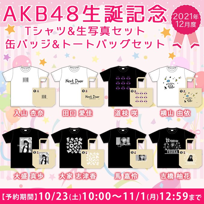 田口 愛佳@48manaka_16 -- 生誕祭Tシャツとトートバッグ!今年はこんな感じのデザイン😬 twitter.com/akb48_netshop/… AKB48 Official Shop 明日10/23(土)10:00~予約開始‼️#AKB48 生誕記念グッズ 2021年12月度年に1度のアニバーサリーグッズ🎂🎁【予約期間】11/1(月)12:59まで✅対象メンバー#入山杏奈/#田口愛佳/#道枝咲/#横山由依/#大盛真歩/#大家志津香/#馬嘉伶/#吉橋柚花shop.akb48.co.jp/selection/list…#AKB48OfficialShop pic.twitter.com/BkpcY7PwE9