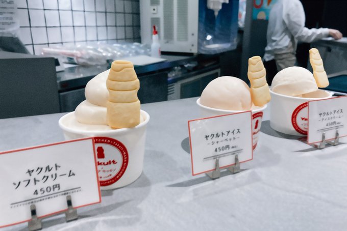 こちらのアイスがどうしても食べたくて。たぶんヤクルトファンのおじさまも食べにいらっしゃいましたので、心強かったです。期待通りに美味しいです☺️アイスdeヤクルトミックスを食べました🍦もいつか! pic.twitter.com/mP8xlK82pU