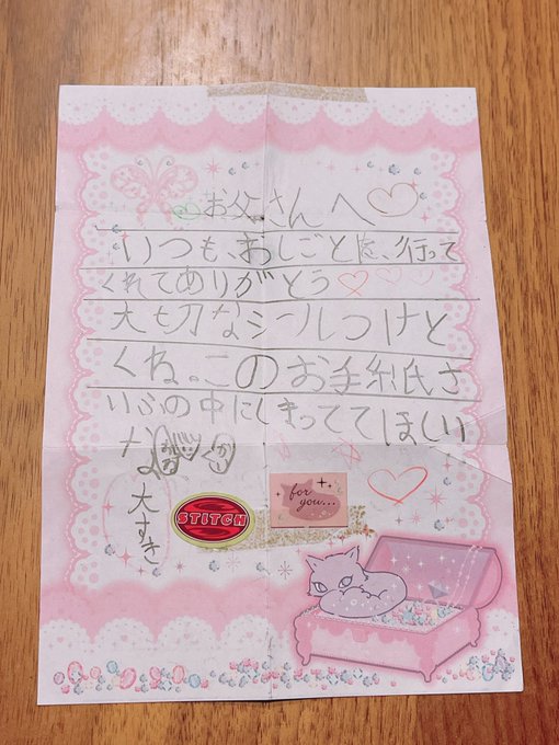 お父さんが急に「めるからもらったお手紙まだお財布の中に入れてるんだよ〜」って見せてきてくれた😂