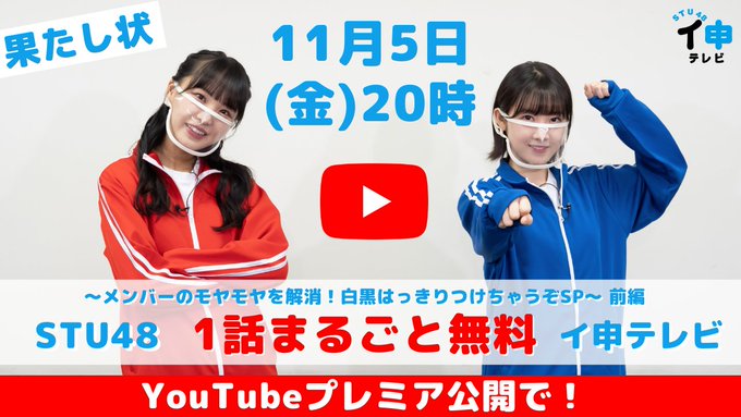 甲斐 心愛@k_cocoa1128 -- このマスク面白いでしょ! twitter.com/imousutv/statu… STU48 イ申テレビ 🔔🔔緊急告知🔔🔔#STU48 #イ申テレビ 「果たし状 〜メンバーのモヤモヤを解消! 白黒はっきりつけちゃうぞSP〜 前編」が1話まるごと無料👏👏✨✨YouTubeプレミア公開で✨✨11月5(金)20時〜ぜひ、ご一緒に🥂🌙まだ「ファミリー劇場CLUB」の会員でない方もこの機会にぜひ pic.twitter.com/0z9FAvYYcq