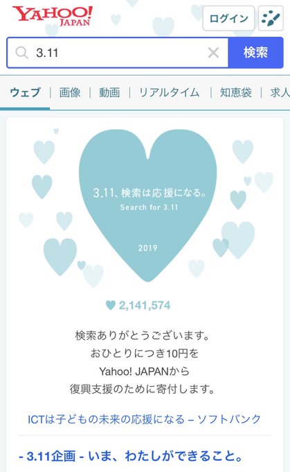 みなさんもyahooで3.11検索よろしくお願いします💭