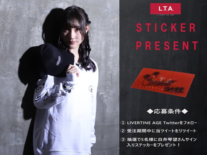 Shirai Kotono@shir0chaan -- フォローとリツイートで応募完了だって👊🏻お願いします👊🏻 twitter.com/livertineage/s… LIVERTINE AGE オフィシャル #白井琴望さんの直筆サイン入りステッカープレゼント企画実施応募方法は、@livertineageをフォロー&こちらのツイートをRTのみ✨抽選で5名様にプレゼントします🎁締め切りは11/16(火)までコラボアイテムはコチラから!livertineage.jp/SHOP/201892/22…#LIVERTINEAGE #白井琴望 #タレント #プレゼント pic.twitter.com/gGLRAX0fKr