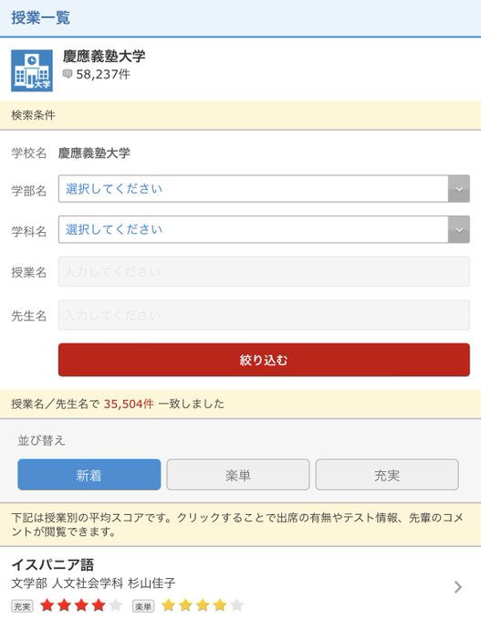 大学名と授業名を入れたら、授業を履修したことがある人の口コミが見れて、楽単度とか内容とか結構詳しく知れます👨🏻🎓👨🏻🎓