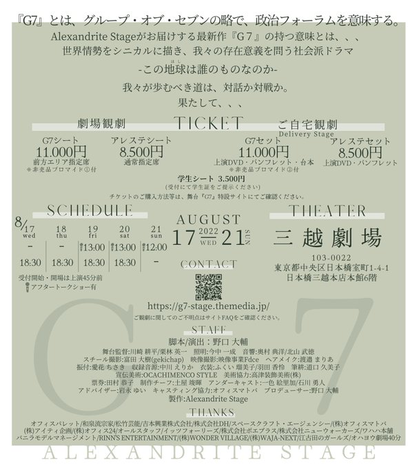 舞台G7、ご予約してくださったみなさんありがとうございます