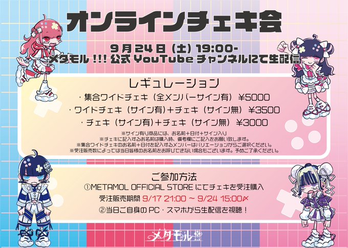 オンチェキ予約15:00まで!いつもありがとうの人はもちろん、はじめましての人も大歓迎だよ〜、遠くてなかなか会えないとかのひとはオンラインで愛伝えてくれるとうれしい! twitter.com/metamol_fourze…