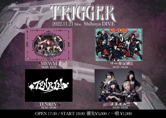 相笠萌【メタモル!!!】@moeaigasa0406 -- やば!めっちゃ久しぶりのダイブˆ ඉ́ ̫ ඉ̀ ˆトリだ〜きてほしい!! twitter.com/metamol_fourze… メタモル!!! ⛓ライブ出演決定🎵⛓2022.11.21(月)『TRIGGER』@ SHIBUYA DIVE🕒OPEN 17:30 / START 18:00🎫前売り¥3,000 / 当日¥1,000+1D🎟チケット発売日時11/3 21:00〜チケットURL▷t.livepocket.jp/e/trigger3⛓️出演時間⛓️🎤19:20〜19:50📸終演後❤️🔥入場特典あり❤️🔥 pic.twitter.com/sLpCTzbzBq