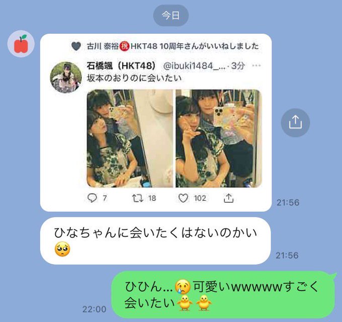 石橋颯(HKT48)@ibuki1484_hkt かえちゃんからは聞いてないよ!