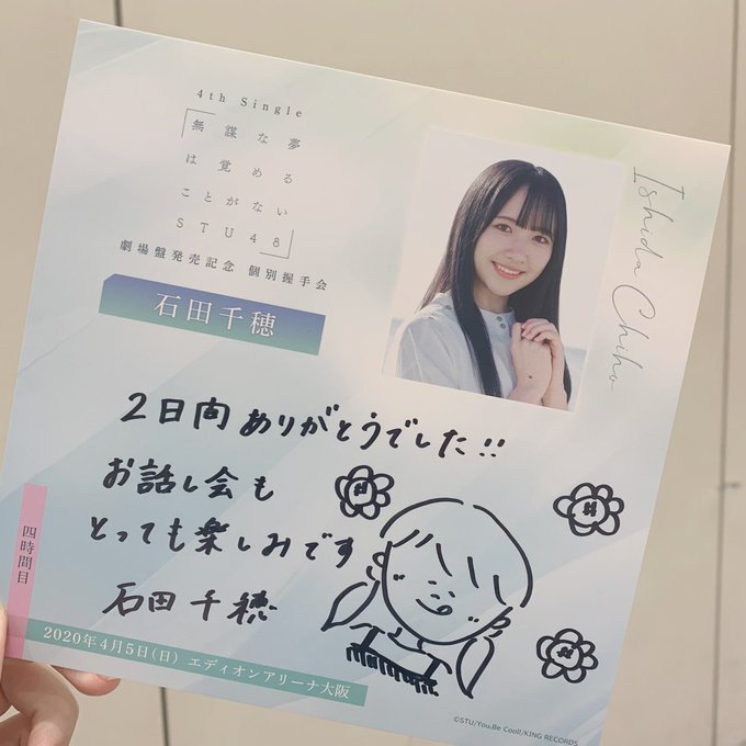 石田千穂@_ishida_chiho -- オンラインサイン会 お待たせ致しました、、!待ってくださって本当にありがとうございます💐みんなの事だいすきです!!#無謀な夢は覚めることがない pic.twitter.com/1lRSCWRTSd