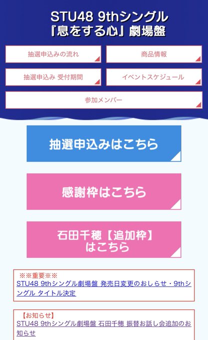 石田千穂@_ishida_chiho -- このあと13時まで!です! twitter.com/_ishida_chiho/… 石田千穂 6月25日の追加枠発表されました。なんか…面白い😂記念写真撮りました。皆様お待ちしてます!!stu48.chara-ani.com pic.twitter.com/MaPsIqphY2 石田千穂@_ishida_chiho -- 明日まで!でした!!