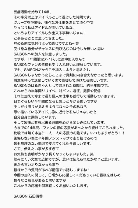SAISONと石田晴香の応援をよろしくお願いします! pic.twitter.com/eD0IZIxBVi