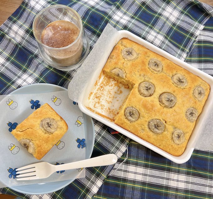 バットで作るバナナケーキ🍌✨