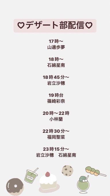 デザート部の配信時間なんとなく決まったよ🥺✨