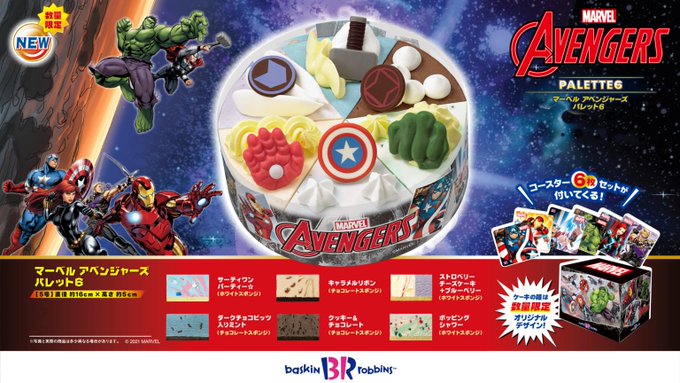 SAYAKA AKIMOTO@akimotooo726 -- なんちゃー!🤩🤩🤩🤩 twitter.com/br31_icecream/… サーティワン アイスクリーム 📢MARVELテーマのアイスクリームケーキ❗人気の #MARVEL をテーマにしたケーキ 『マーベル アベンジャーズ / パレット6』が数量限定で新登場🌟アベンジャーズに登場する6人のヒーローをフレーバーとチョコ、ホイップで表現した #アベンジャーズ づくしの一品🤩詳しくは⬇bit.ly/3xcggTo pic.twitter.com/zIzHREh4Jo