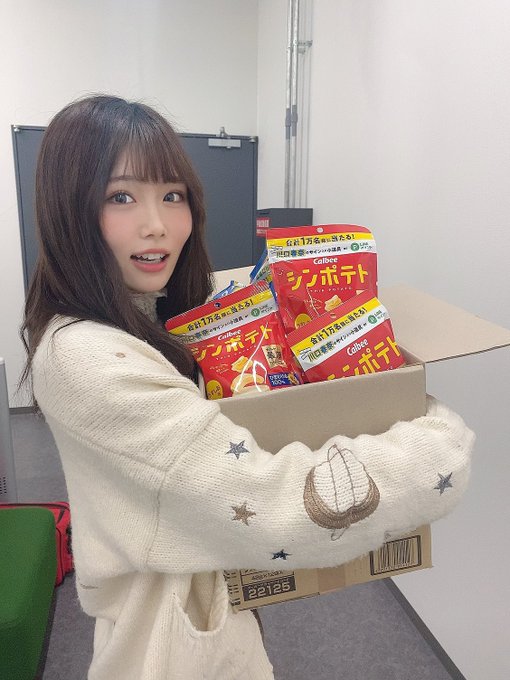 秋吉優花 あきよしゆか@akiyoshi_hkt48 -- オンライン握手会ありがとうございました!!🥳🥳#カルビー さんからの差し入れに囲まれて幸せです😭💐ありがとうございます✨#劇はじ がんばるぞ💪💪💪 pic.twitter.com/FlnYCfVxSl