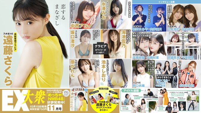 HKT48@hkt48_official_ -- 【🎮発売中🎮】#EX大衆 11月号\✨発売中✨/連載 #HKT48 MANIAC LOVE今回は #秋吉優花 #堺萌香 が登場です📣ぜひチェックお願いいたします😊‼️ twitter.com/EXtaishu/statu… EX大衆編集部 10月15日『EX大衆』11月号発売。表紙は乃木坂46遠藤さくらさん。5期生中西アルノさんグラビア。AKB48坂口渚沙さん、NMB48原かれんさん、水湊みおさんグラビア。乃木坂46和田まあやさん&向井葉月さん、田村真佑さん&弓木奈於さん、AKB48千葉恵里さん&大盛真歩さん対談など #乃木坂46 #遠藤さくら pic.twitter.com/7Y0n6kQm0t 秋吉優花 あきよしゆか@akiyoshi_hkt48 -- @hkt48_official_ 🎮🎮🎮