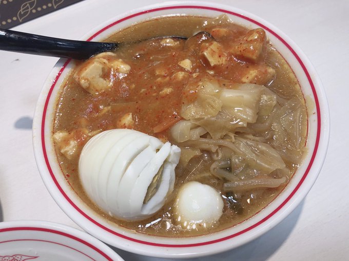初!!ひとりで蒙古タンメン食べた🥺❤️初めてだったから普通の蒙古タンメンと麻婆豆腐のご飯セットにしたんだけど食べれば食べるほど辛いしご飯も合いすぎる最高。これはハマりそう。なんで今までいかなかったんだろう🤔