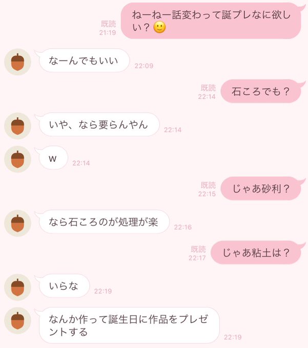 加藤玲奈@katorena_710 -- 妹とのLINE。相変わらず冷たいけど、冗談にのってくれる優しい妹。笑誕生日は粘土あげて自分の誕生日たのしみに待とうかな🤔 pic.twitter.com/g3ZngNljMu 篠崎 彩奈@ayana18_48 -- @katorena_710 砂利でもいいかられなちゃんからプレゼント欲しい(真顔) 加藤玲奈@katorena_710 -- @ayana18_48 やばい人ここにいます💁🏼♀️喜んで今度砂利プレゼントします(真剣 篠崎 彩奈@ayana18_48 -- @katorena_710 やったー!!!🥺🥺🥺🥺あとついでにお下がりもちょーだい!笑🥺🥺🥺🥺🥺🥺🥺🥺