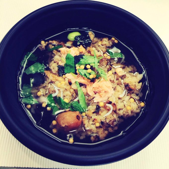 今日も朝からCM撮影☻朝炊き込みお茶漬け?ケータリングが♪初めて食べたけどめっちゃ美味しかった☻ pic.twitter.com/nxHrZtDfJr