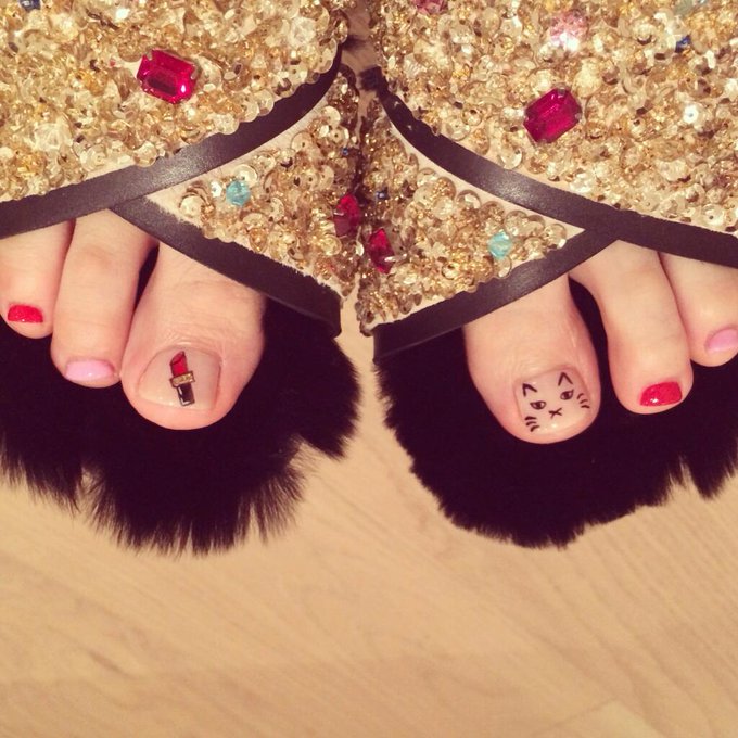 篠田麻里子@mariko_dayo -- 最近のネイルはもっぱらアート٩( ᐛ )و広告や雑誌あるから足しか遊べないけど落書きしまくるのが好き( *˙-˙* )控えめに猫リップ。・*・:≡( 「ε:)ノ pic.twitter.com/2HwGpwtlna