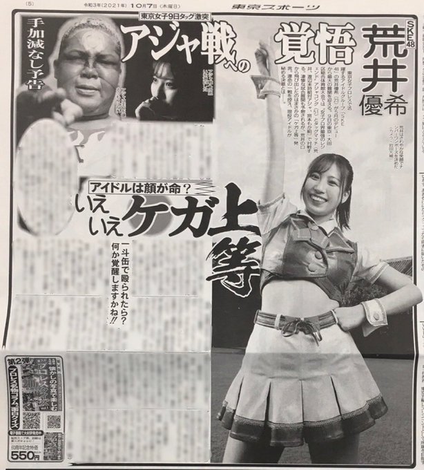 荒井優希@araiyuki57 -- 今日の東京スポーツさん!!!すごい大きい😳皆さんゲットしてくださいっ😚👐🏻#tjpw #tjpwWP2 twitter.com/tjpw2013/statu… 東京女子プロレス 本日発売の東京スポーツに大田区に向けて荒井優希のインタビューがドーンと掲載されています!是非お買い求めください!#tjpw#tjpwWP2#SKE48 pic.twitter.com/WX1kWRUGQA