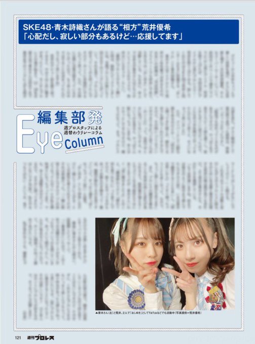 荒井優希@araiyuki57 -- 今日発売の #週プロ さん!!1.4の試合とおしりさんが私のことを話してくださってるページがあります😳✨ゲットしてねっ🙌#tjpw pic.twitter.com/GUp4WUxKrZ