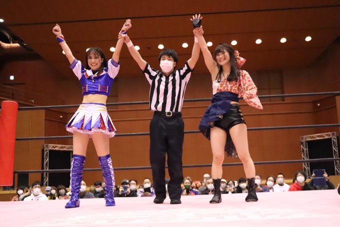 タッグトーナメント1回戦、もかさんと2人で勝つことができました😭苦しい時間もあったけどもかさんの声で立ち上がれた!2回戦はもっと息を合わせて上を目指していきたいな!!#tjpw #tjpwMHT2 pic.twitter.com/s2qXdJaoPW