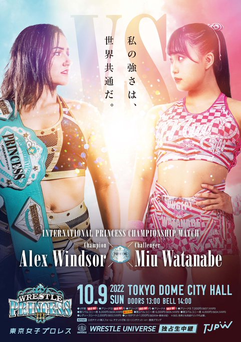 荒井優希@araiyuki57 -- あと5日😼🖐️ #tjpw #tjpwWP3 twitter.com/tjpw2013/statu… TJPW 東京女子プロレス プロレスは共感共同体!✨10月9日(日)TOKYO DOME CITY HALL 14:00⚜️インターナショナル・プリンセス選手権《王者》アレックス・ウィンザーvs渡辺未詩《挑戦者》・アリーナB 7,000🔺残少・第2バルコニー 6,000🔺残少・第3バルコニー 4,000・レディースシート2,000🔺残少#tjpw #tjpwWP3 pic.twitter.com/jbWpFUzulW
