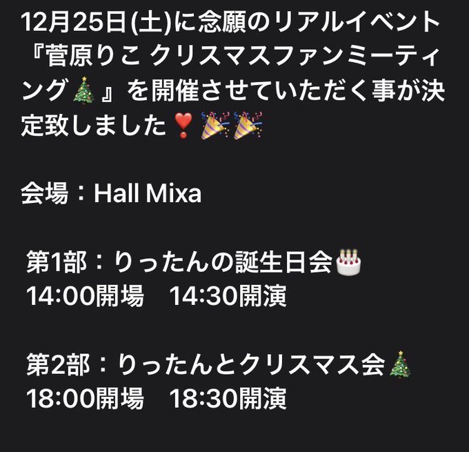 『菅原りこ クリスマスファンミーティング🎄』一般チケット発売が開始になります🥳🎉