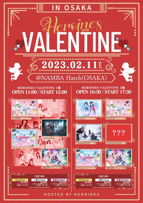 海まりん(のんふぃく)@Marin_nonfic -- 大阪‼️東京‼️バレンタイン一緒に過ごせちゃうよ♡🍫 twitter.com/heroines_idol/… HEROINES(ヒロインズ) 【大阪 & 東京でVALENTINE💝】HEROINES VALENTINEを大阪&東京で開催決定‼️今年のバレンタインはヒロインズ一緒に🎁※大阪公演は2部制での開催となります本日より先行抽選受付開始🍫eplus.jp/heroines-valen…#ヒロインズ #ヒロインズバレンタイン pic.twitter.com/ifXGpkR53h