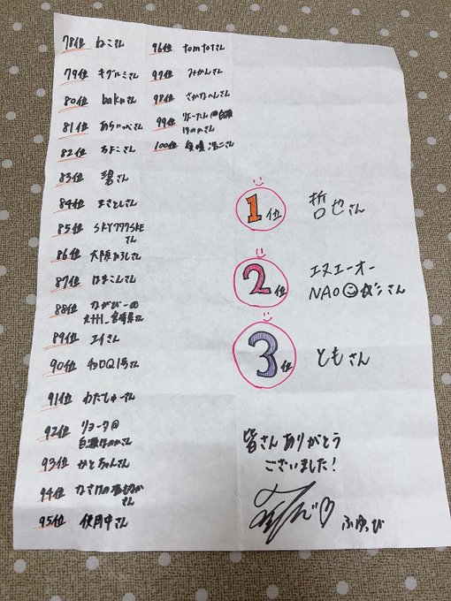 上位100人になってくださった皆さんです。