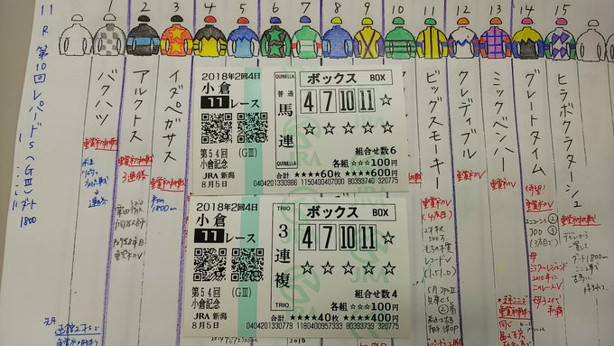藤江れいな@nya_n017 -- 昨日行われた小倉記念🐴馬連・三連単共に当たったぁあ💓#私を競馬につれてって twitter.com/keiba_ana_west… ラジオNIKKEIアナウンサーズ 買ってきたよー。今週は #小倉記念 で勝負!#私を競馬につれてって#塗り絵はレパードステークスだけど pic.twitter.com/rpcgaonogN