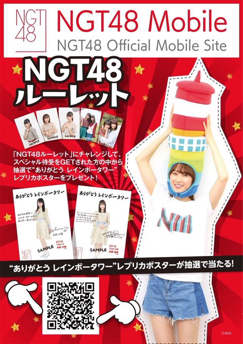 NGT48ルーレットにチャレンジして、スペシャル待受をGETされた方の中から抽選で“ありがとう レインボータワー”のポスターが貰えます✨良かったらやってみてください☺️💓