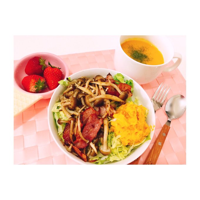 西野 未姫@mikinishino4 -- 今日の朝ごはんっ😊このきのこは昨日買ったからすっぱくなかった😂#未姫ご飯#カボチャスープ#かぼちゃサラダ pic.twitter.com/RNdxqamZqJ
