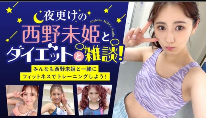 西野 未姫@mikinishino4 -- そう言ってくれる方がいるの嬉しいすぎます🥹❤️ありがとうございます!!共演楽しみにしてます✨✨ twitter.com/sae_0102_f/sta… 緒方 さえ 6月12日の21:59まで!『 夜明けの西野未姫とダイエットと雑談!』イベントに参加します!!!痩せたい!!!そして西野未姫さんと共演したい!!!みなさま応援よろしくお願いします!💜 #SHOWROOM #西野未姫 さん pic.twitter.com/Ku8zBwC7w1