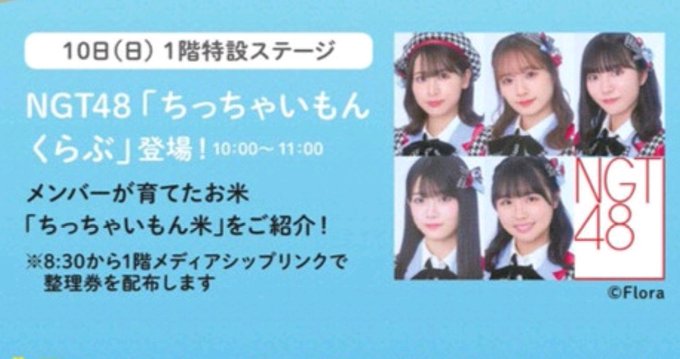 諸橋姫向 (やひこ)@hinata_yahi5 -- 今日です!!おしゃべり会前なんですけど、よろしくお願いします!!📛 twitter.com/nippo_event/st… 新潟日報イベント 4/10 10:00~NGT48ちっちゃいもんくらぶがメディアシップ1階のステージに登場!8:30~1階メディアシップリンクで観覧席の整理券を配布します。立ち見も可能ですが、スペースが広くありませんので観覧を制限させていただく場合があります。ご了承ください。 pic.twitter.com/S4v14AWVd1