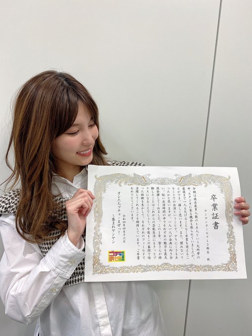 上手く会話が出来なくて悩んだり落ち込んだ瞬間もありましたが、 #ゴチャ13 で出会えたMCの皆様とヤンガの皆から沢山のことを学べて振り返ると楽しい思い出がいっぱいです😌有野さんから直接卒業証書いただけて嬉しかった!✨