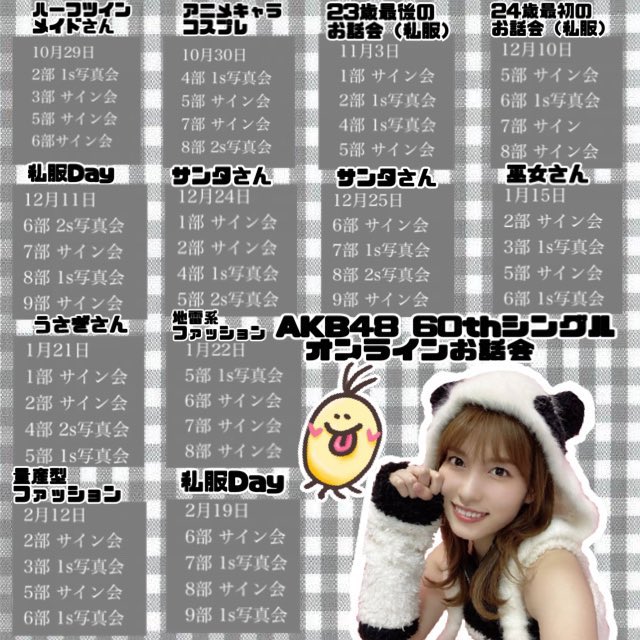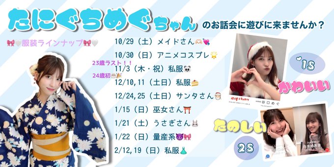 谷口めぐ 🐼👅@o_megu1112 -- おはようございます!オンラインお話会受付中です!akb48.chara-ani.comあと少しで完売の部もあるので気になる方はお早めに🙇♂️!どの日も気合い入ってます!是非✨ pic.twitter.com/Er2c9CoJUZ 谷口めぐ 🐼👅@o_megu1112 -- もう間もなくで第5次受付が締め切ります!(13:00まで)お忘れなく〜✨