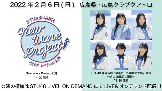 谷口茉妃菜@Mahina_tksm -- 📺📺📺👇🏻 twitter.com/STU48_official… STU48 この後14:00からはNew Wave Project公演が開演!さらに18:30からはSTU48 課外活動「勝手に!四国観光大使」公演〜谷口 茉妃菜生誕祭〜が行われます!公演の模様はSTU48 LIVE!! ON DEMANDにて生中継!是非ご覧くださいませ!dmm.com/lod/stu48/#NWP #ASH#STU48#谷口茉妃菜生誕祭2022 pic.twitter.com/h0YomkBpGl