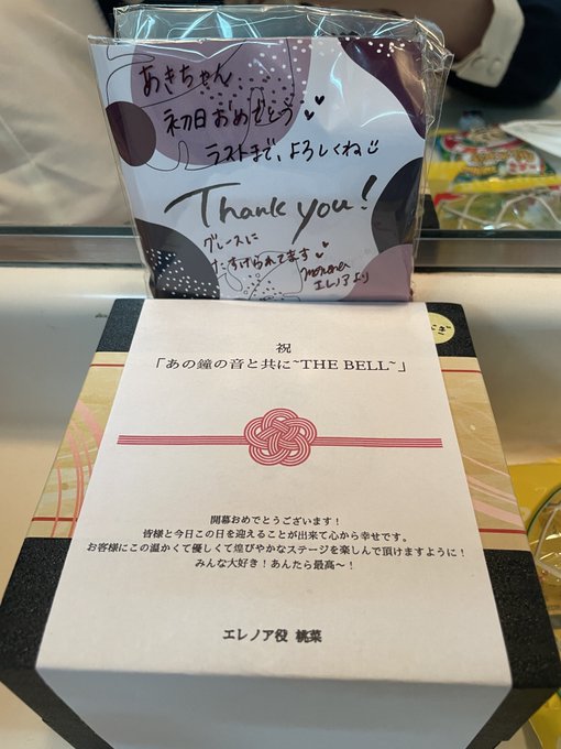 B初日ありがとうございました!桃菜さんから初日祝いに、とてもとてもあたたかいメッセージとお弁当をいただきました😭鰻の力で頑張りました!!!