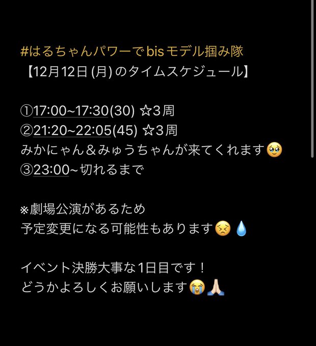 間もなく23:00~です😖🙏🏻 twitter.com/haruka_nmb_48/…